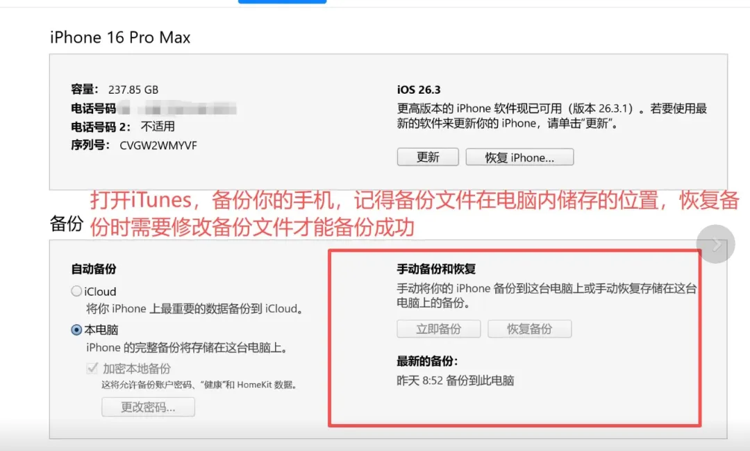 真碰上还在开放的旧版,要走流程,先准备数据,电脑连上,完整备份走一遍,iCloud也行,iTunes也行,心里要有数,高版本的备份往下恢复常常不认,降完系统很可能是个空机,需要考虑哪些能云端拉回,哪些要另做方案,固件去哪下,ipsw.me查型号找对应版本,挑标着还在签名的文件,型号对不上,刷机直接卡住,备份完就要进模式,全面屏和非全面屏按键顺序不一样,恢复模式也好DFU也好,操作手法一套一套来,屏幕黑白变化,电脑上设备识别出来了,接着在iTunes或Finder里点恢复,Windows按住Shift,Mac按Option,选进刚下的ipsw,剩下就是等,擦除数据,写入系统,中间手机会重启几次,线不断,电稳住,让它走完。