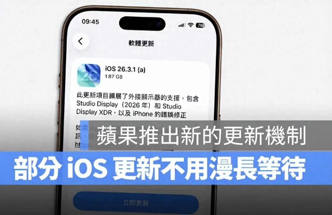 Apple 正式发布首个「背景安全改进(BSI)」更新,针对iOS 26.3.1、iPadOS 26.3.1 与macOS Tahoe 修复严重的WebKit 漏洞,让使用者可以更快获得即时防护。