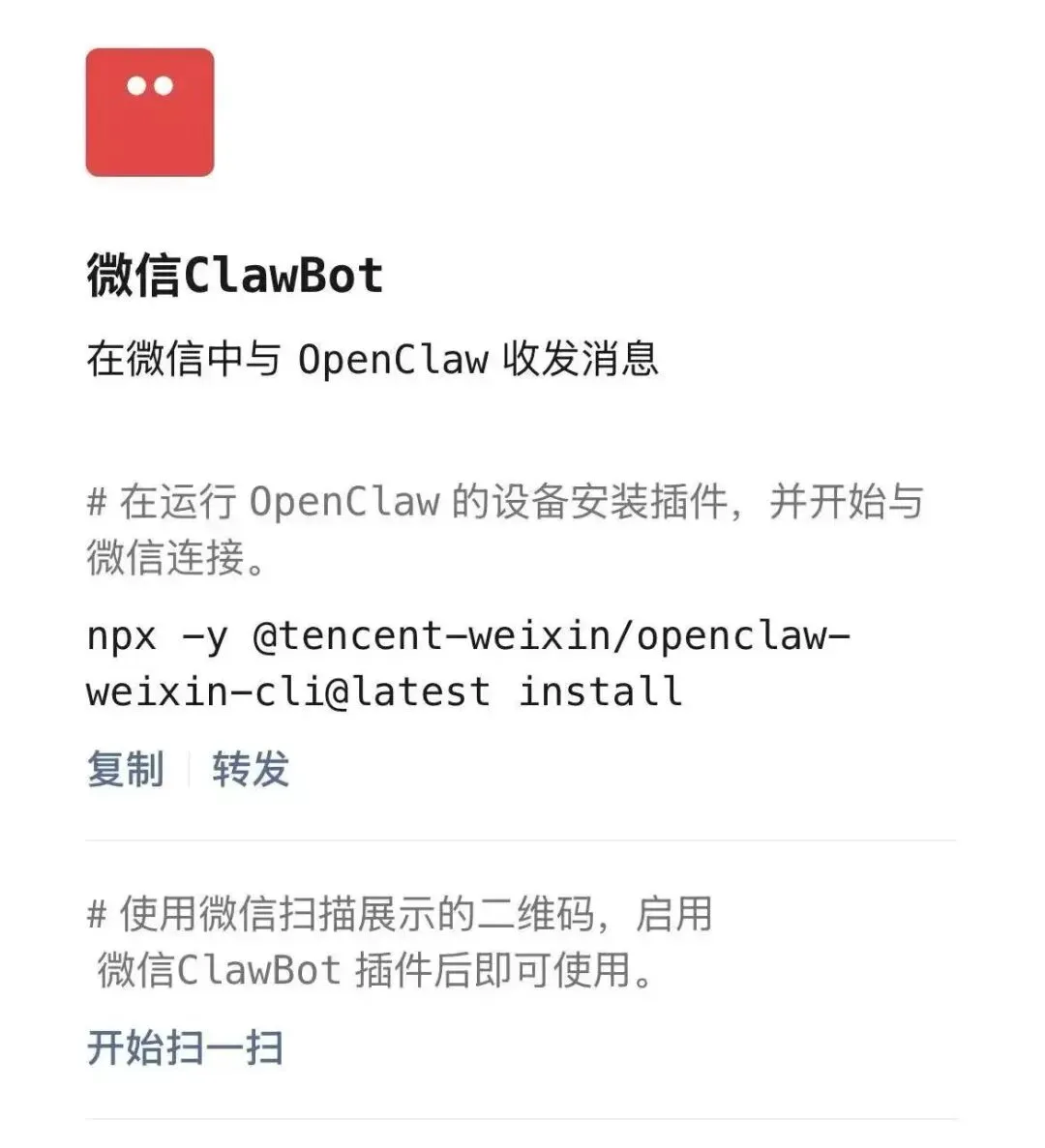 其中第3项不是必选项,不过一般人都会选至少一个,因为方便很多。也这是为什么微信今天推出了ClawBot之后大家引起了一波热烈讨论。如果你还没做上面的1、2步,那暂时就用不上微信出的这个ClawBot。假设您至少是一位“养虾入门选手”,成功配置过openclaw,那可以尝试按它的提示配置ClawBot。配置过程中可以让已经成功运行的龙虾来帮你处理。添加ClawBot成功之后,先给它发一条消息,一来测试是否正常连通,二来有聊天记录后它会显示在(苹果版的)聊天列表中,方便过后查找。但如果你是安卓版,会发现它并不会显示在聊天列表中,每次使用时需要先去搜索,有点别扭,不过估计这个应该是暂时的小问题。ClawBot目前主要还是尝鲜,估计接下来短时间内还会快速迭代,所以如果不是很着急,可以先等等。如果你对openclaw感兴趣但还没开始行动,需要先去尝试普通版的openclaw了。
