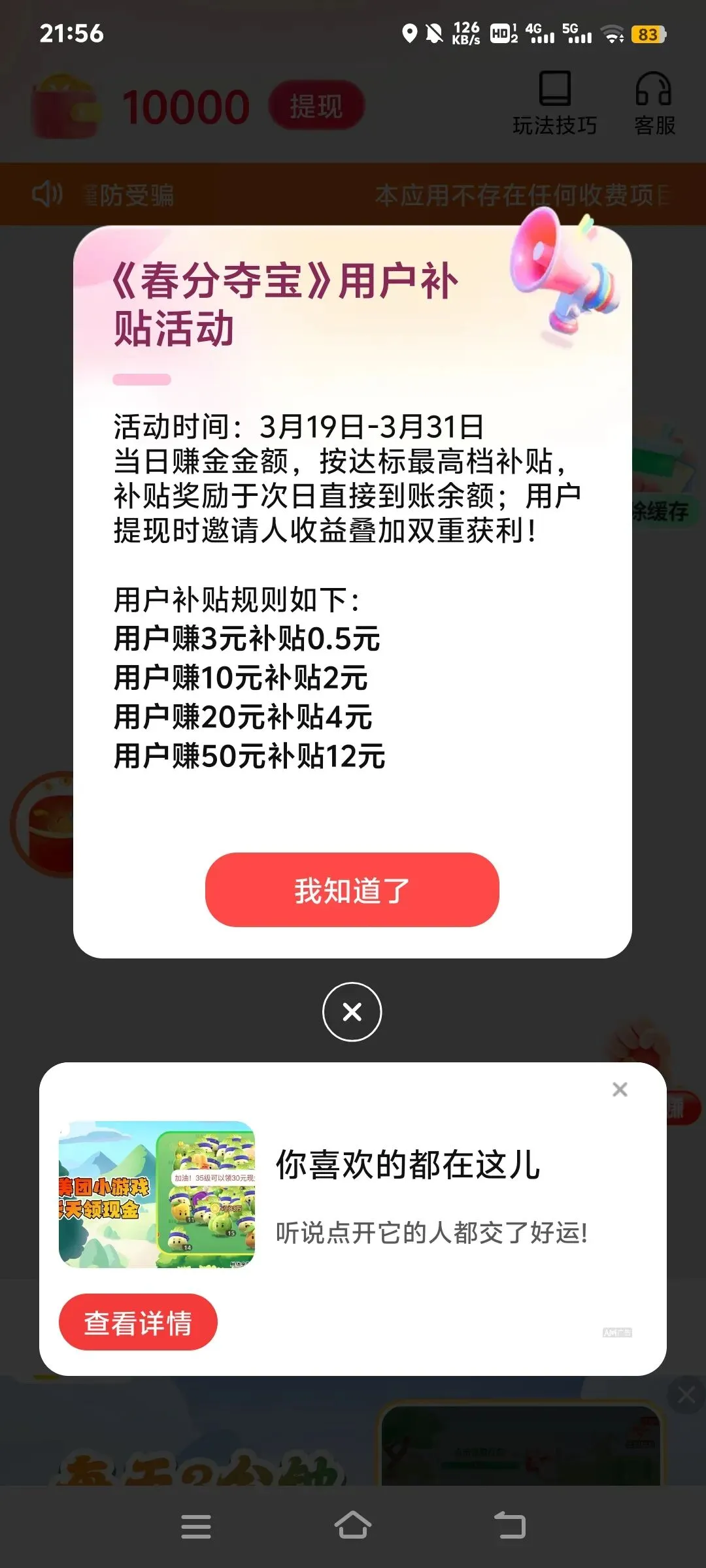 看广告10000-50000=0.5元顶包
