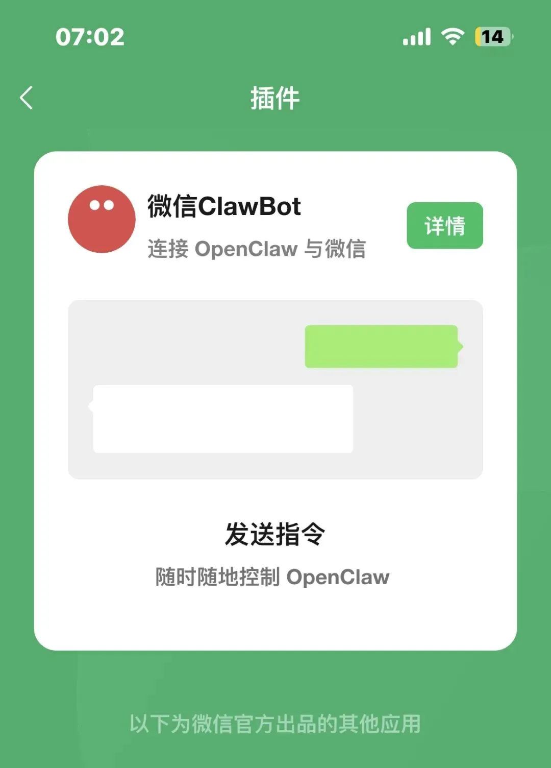 3 月 22 日凌晨,不少熬夜的科技爱好者发现,微信 iOS 版 8.0.70 的「插件」列表里,多了一个名叫「微信 ClawBot」的新选项。