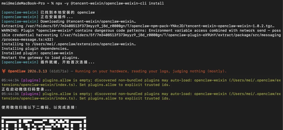 路径三:终端命令行安装。微信扫码,完成连接(已安装OpenClaw)