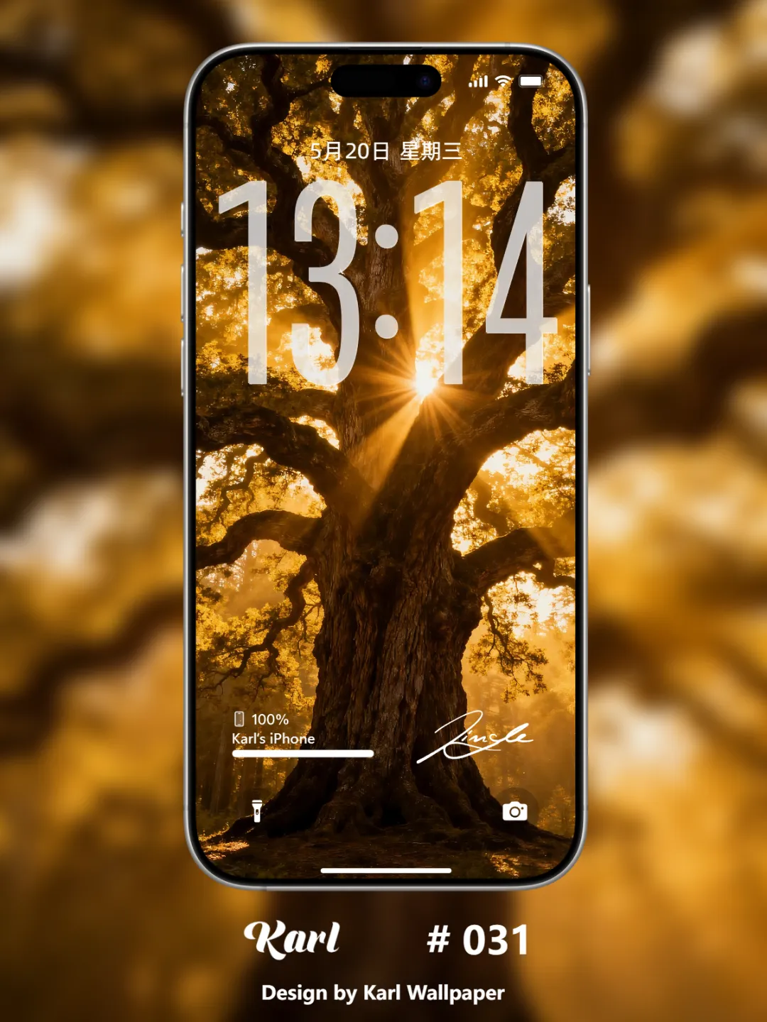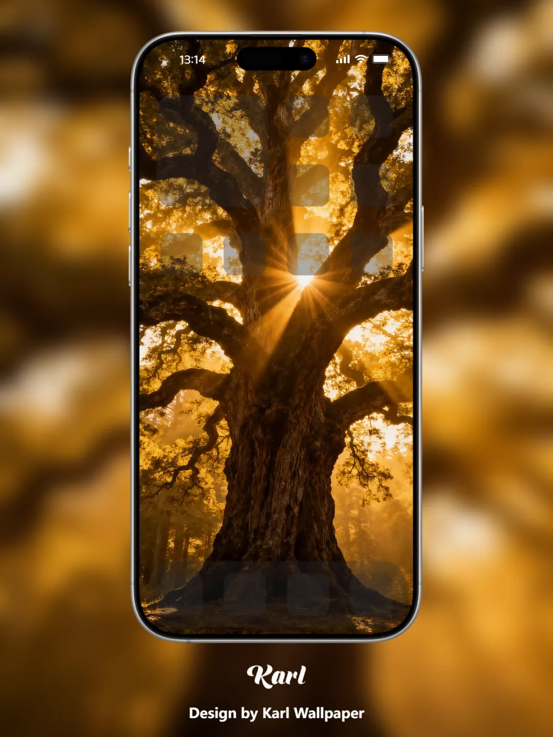 The ancient tree bathes in gilded sunlight, time soaks in the soft glow and slows its pace quietly.