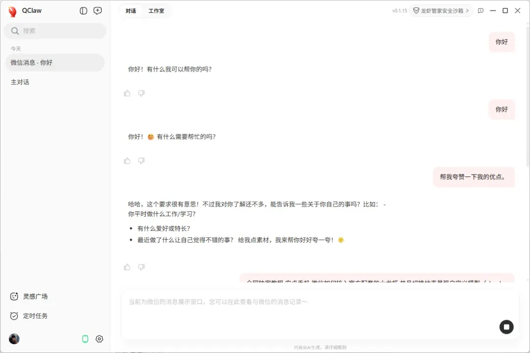 但这事儿能跑起来,前提是AI得在我手边。它不能是“我要用的时候才想起来”的东西,它得是我每天顺手就能摸到的家伙事儿。现在,微信把它送过来了。
