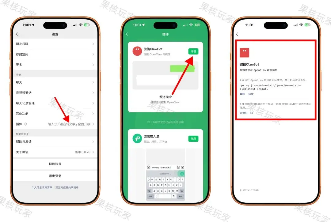 iOS 微信 8.0.70 突然上线微信 ClawBot 插件,这是微信首个官方插件!