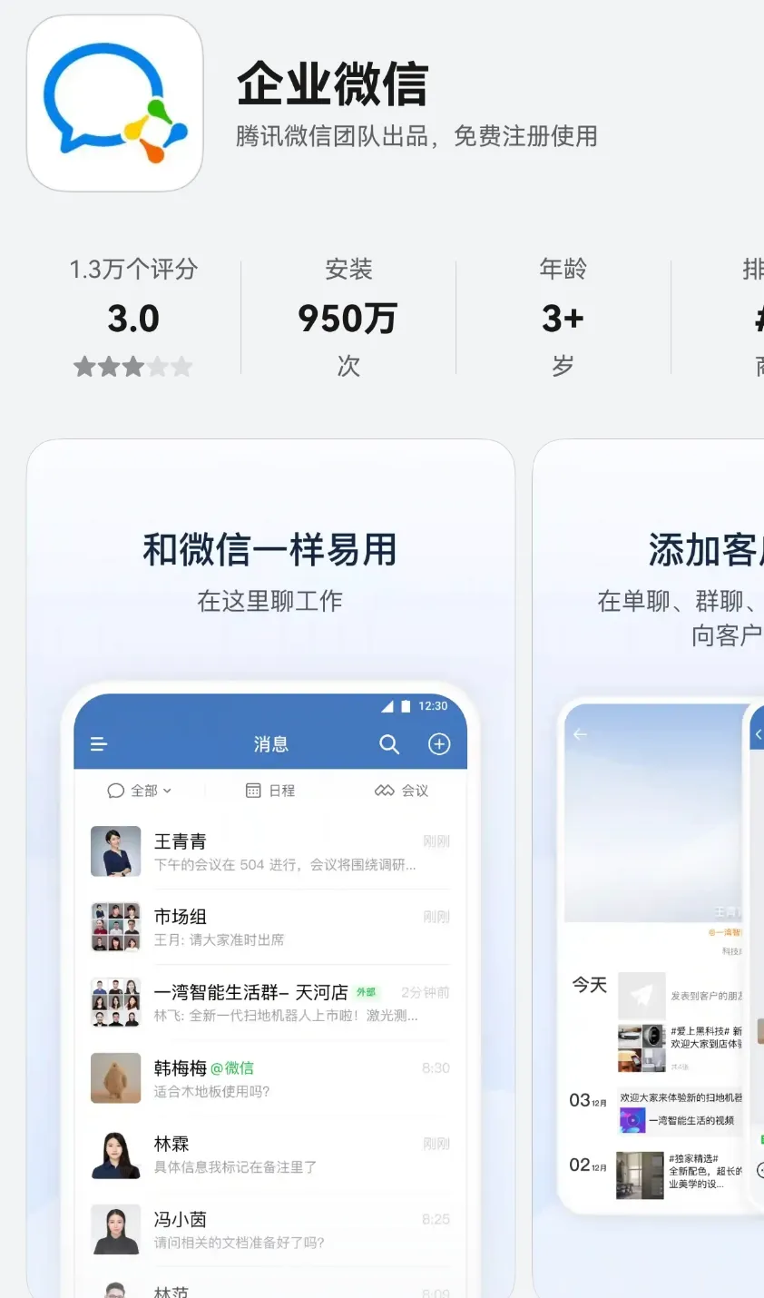 更新内容:1.打卡功能继续补齐2.支持智能总结3.支持智能机器人4.图文编辑支持@人5.群内@人支持多选6.web页面支持图片长按保存、识别二维码等7.web页面菜单完善(支持群发客户、群发客户群、发表朋友圈等)8.个人profile支持查看日程9.联系人详情,电话、手机支持保存到通讯录10.选择客户支持按标签筛选11.审批支持外部选项12.相册、拍照优化
