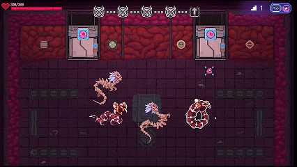 简单的像素风格美术,独立小游戏,很有爽感,进入关卡后,玩家可以控制生物体移动,使用技能,生物体会自动发射弹幕,器官搭配是其核心的玩法系统,器官从左到右进行连接,触发条件和弹幕类型不同,可以组合出不同的效果,多个技能成链类似编程的逻辑,也很烧脑。