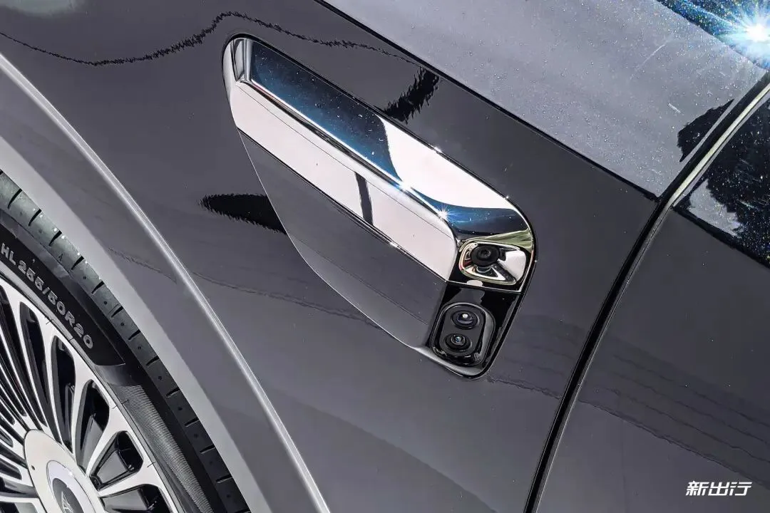 而车侧的前视摄像头放置在了 C 柱后方,这也是鸿蒙智行全新的硬件布局。
