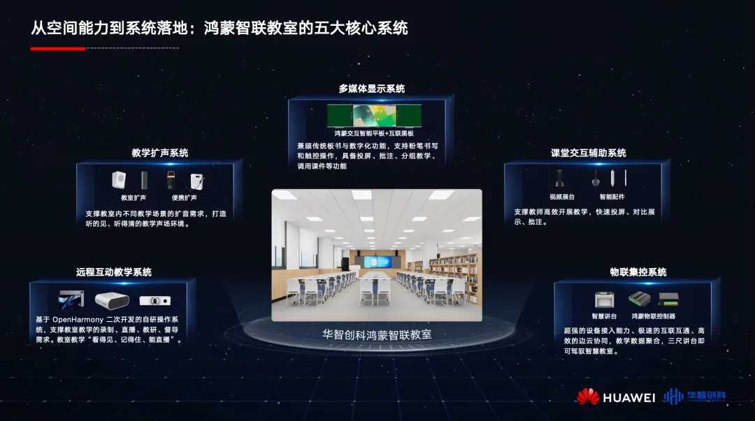 在核心应用场景层面,华智创科重点展示了开源鸿蒙智慧教室解决方案,该方案以开源鸿蒙系统为核心,整合三大核心模块,构建全流程智慧教学生态。