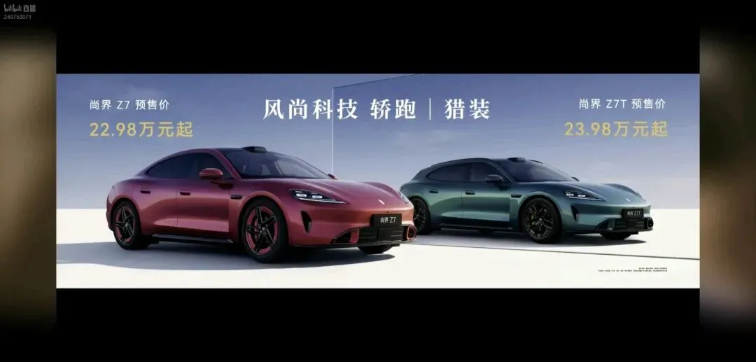 更劲爆的是价格:尚界Z7预售价22.98万元起,Z7T猎装版23.98万元起。
