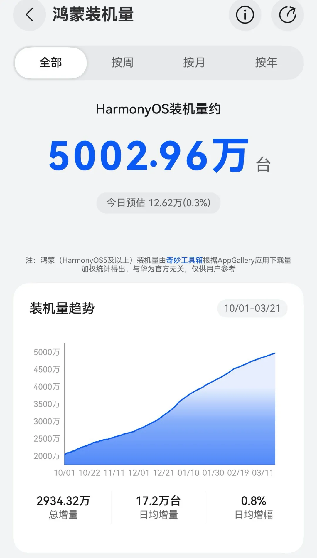 如果说科技圈也有“奇迹”,那么刚刚过去的这个三月,鸿蒙无疑创造了属于自己的历史请注意这个速度——就在不到两周前的2月24日,华为董事长梁华在广东省高质量发展大会上透露的数据还是4000万台。这意味着,仅仅一周多的时间,鸿蒙日均新增装机量超过百万台!📊 谁在推动这场“海啸”?