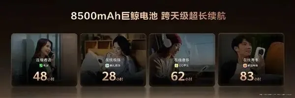 配合华为巨鲸电池的长续航优势,观影、刷短剧、听书等典型场景续航时长显著提升,彻底告别电量焦虑与流畅度担忧。