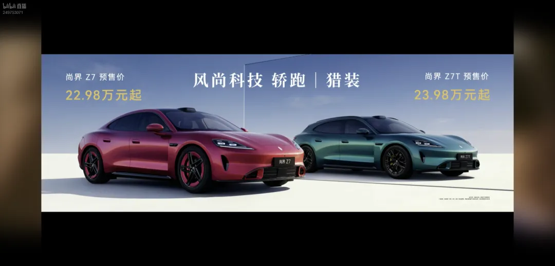 尚界Z7的预售价从22.98万元起,而更实用的猎装版Z7T则是23.98万元起。