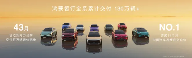 鸿蒙智行全系累计交付突破130万辆,连续14个月位居中国汽车品牌成交均价第一。