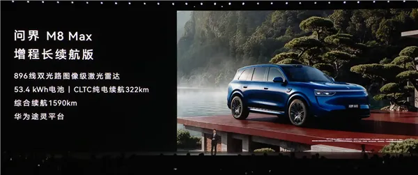 值得一提的是,此次发布会上,问界M8 Max增程长续航版上市,电池包容量为53.4kWh,CLTC纯电续航322km,综合续航里程1590km。