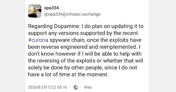 好消息传来!Alfie 已成功利用 Coruna 网页漏洞实现利用!