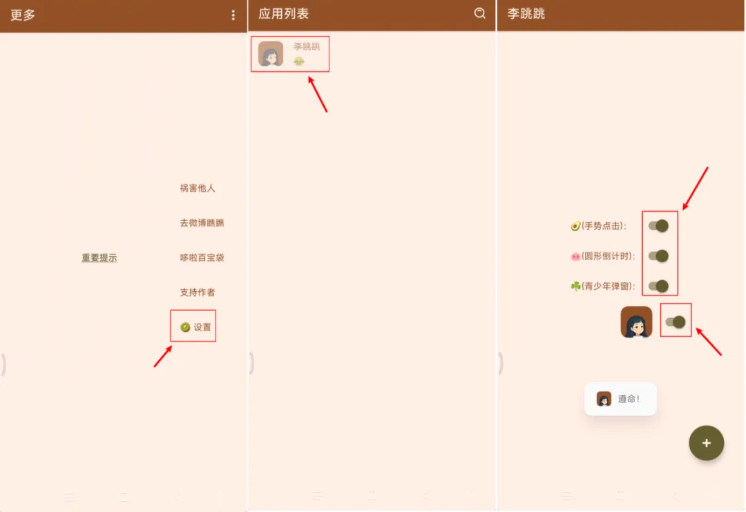 【更多】→【重要提示】→【去设置】→选择李跳跳,将右侧按钮点亮
