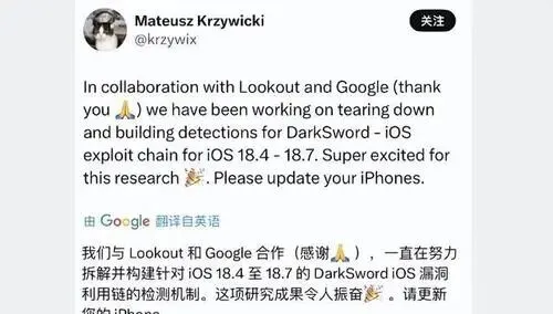 一个被命名为 DarkSword 的新型漏洞组合正式浮出水面,其威胁等级直逼历史级漏洞 Coruna。该漏洞链支持范围覆盖 iOS 18.4 至 iOS 18.7,可实现在 Safari 浏览器中发起远程提权攻击。