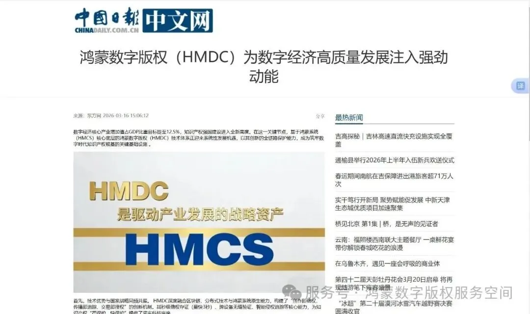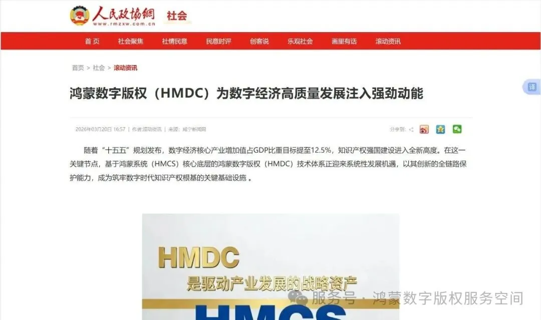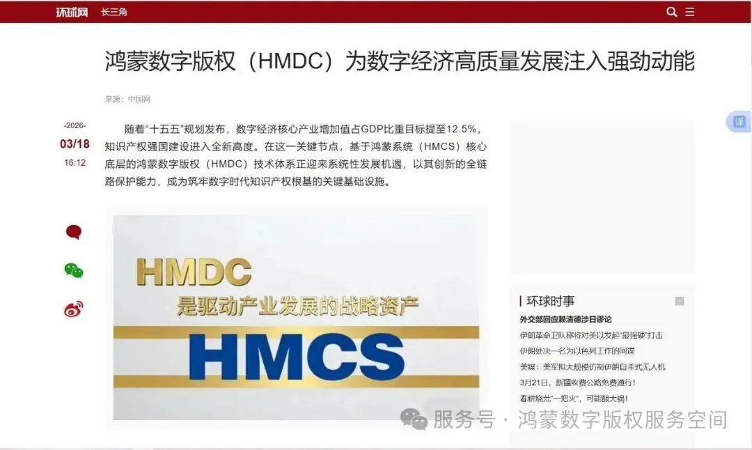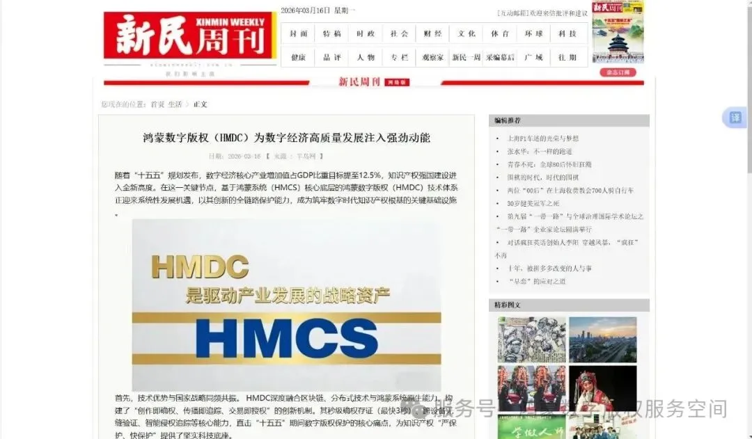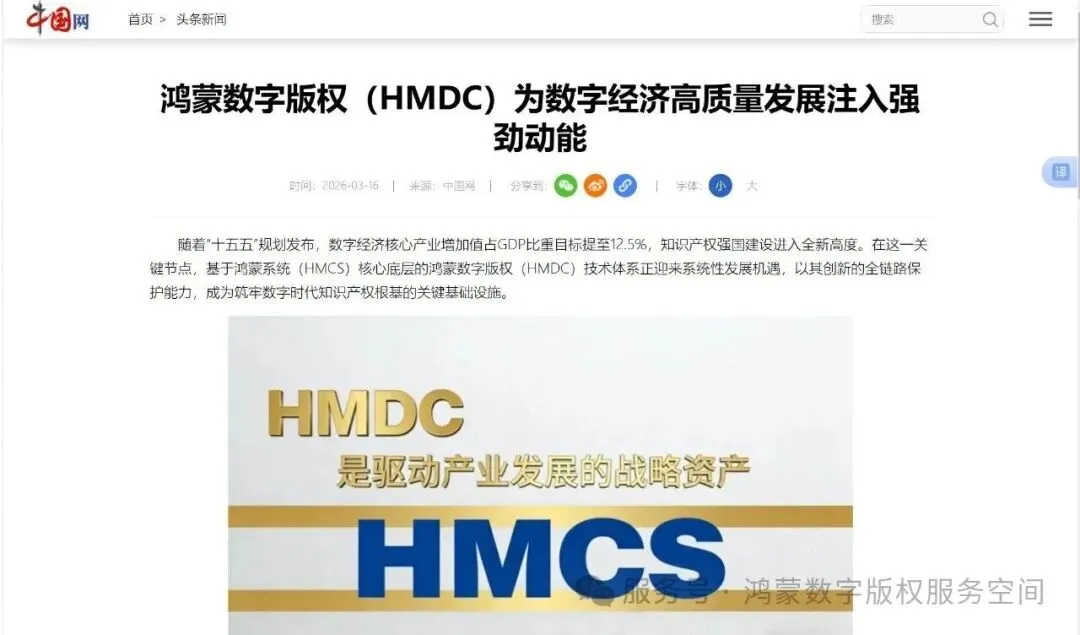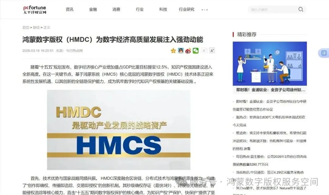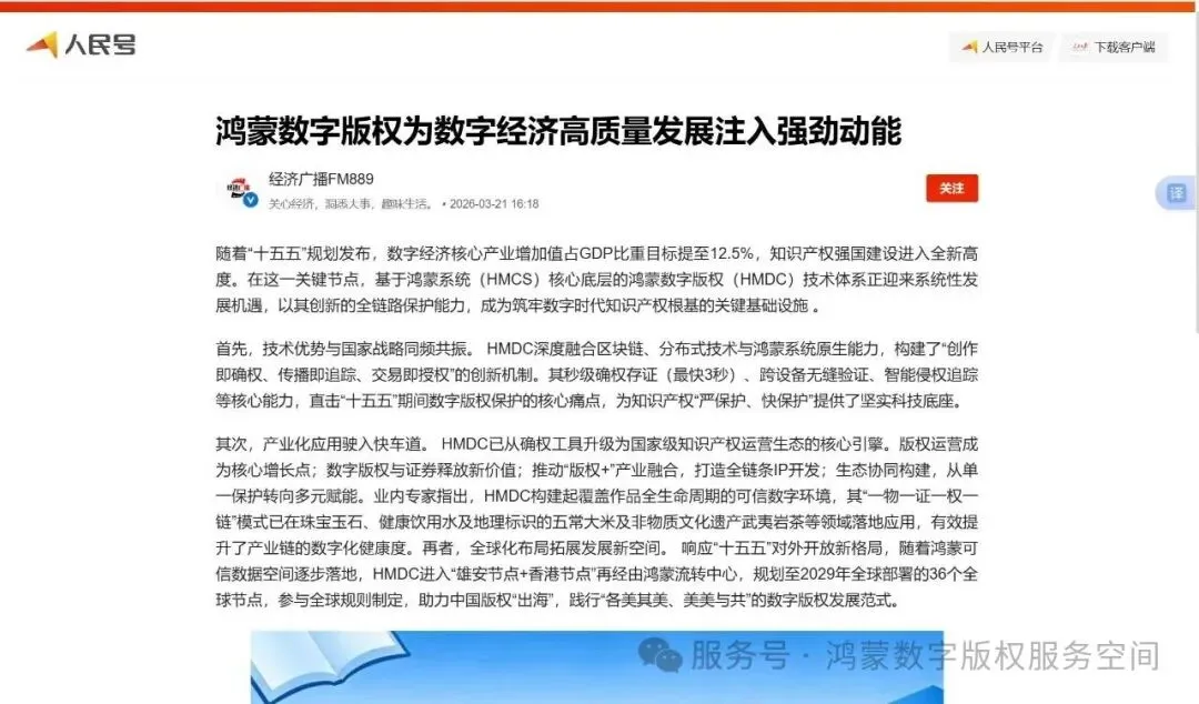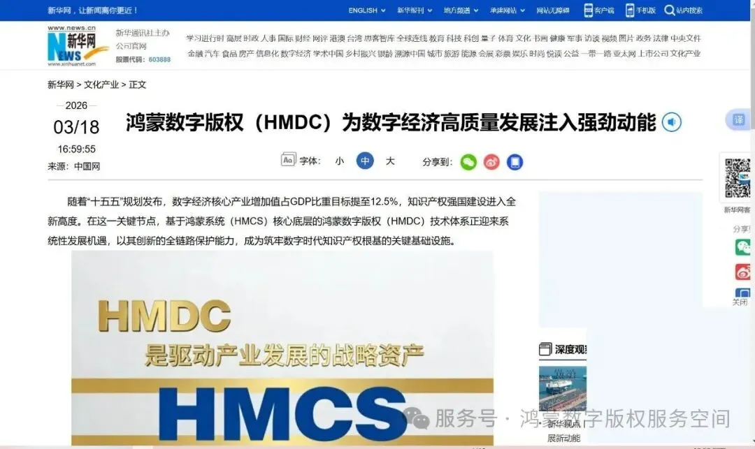 央国媒及大型门户网站等连续报道:鸿蒙数字版权(HMDC)为数字经济高质量发展注入强劲动能华企云链华企云链数字版权服务空间2026年