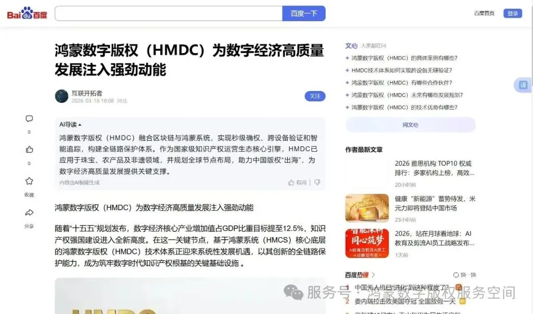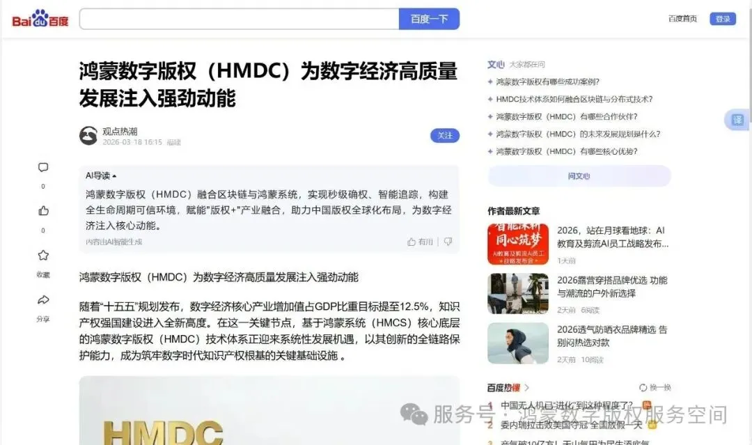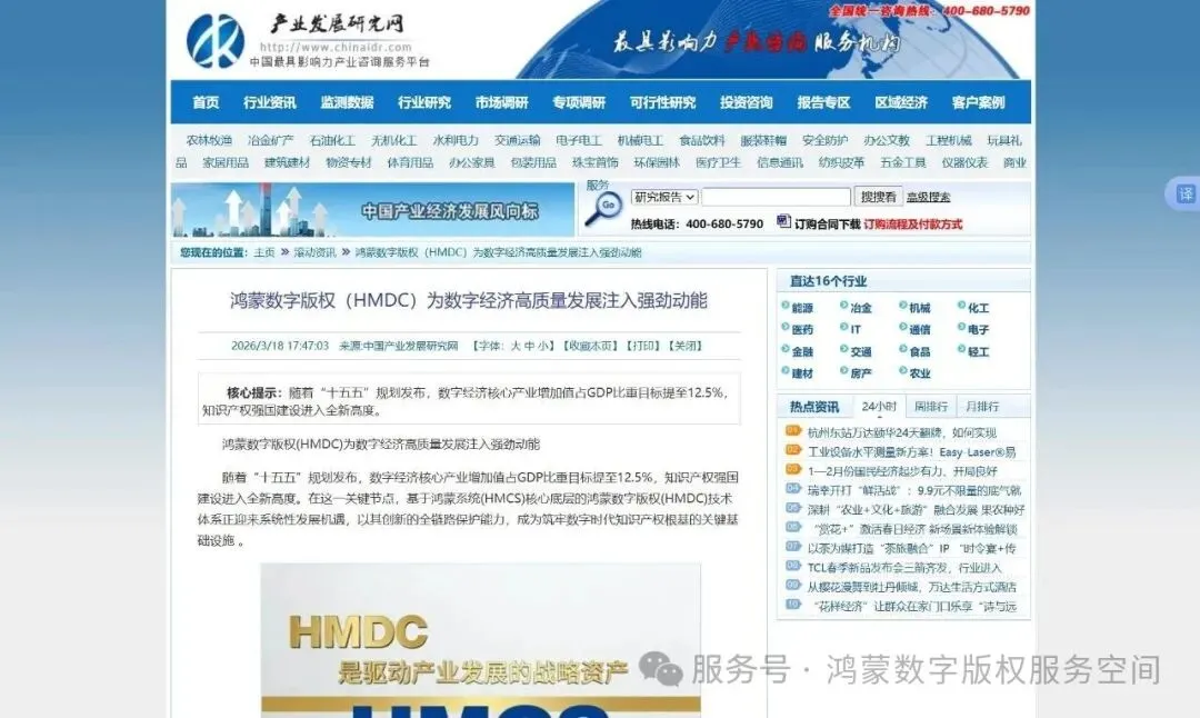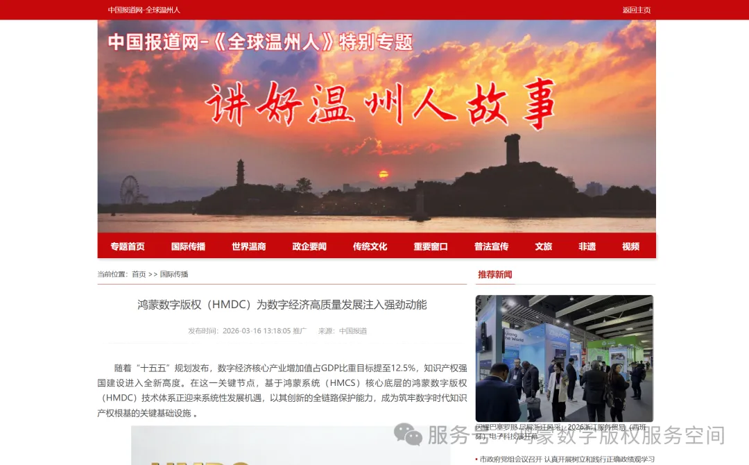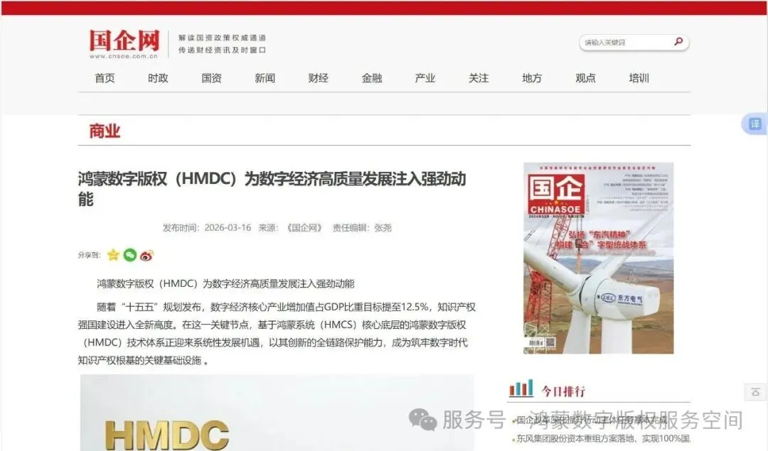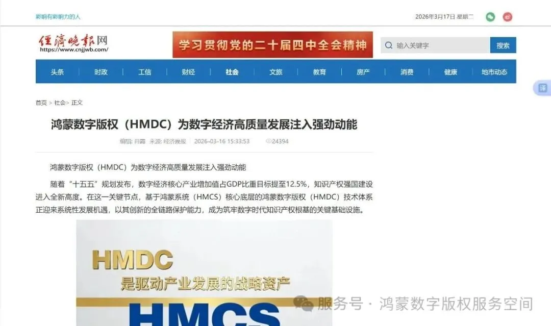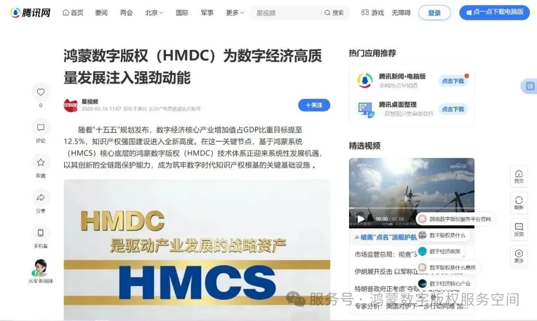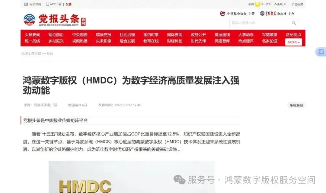 央国媒及大型门户网站等连续报道:鸿蒙数字版权(HMDC)为数字经济高质量发展注入强劲动能华企云链华企云链数字版权服务空间2026年
