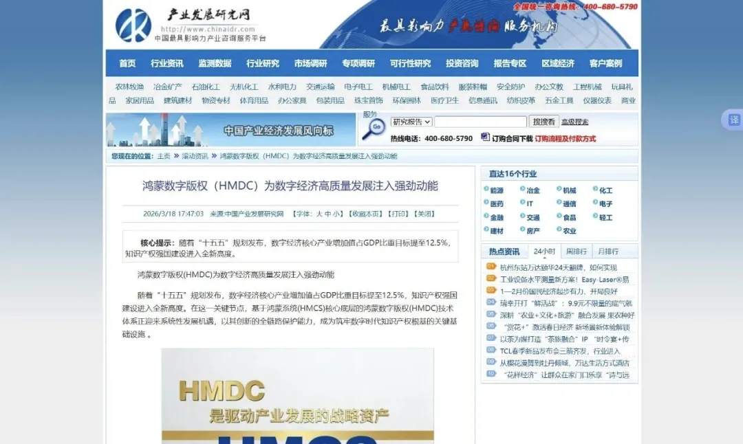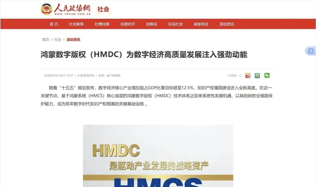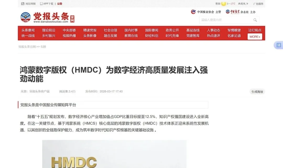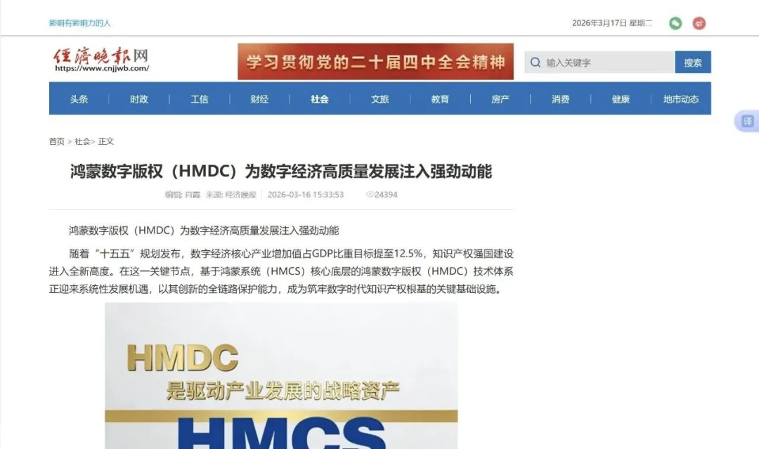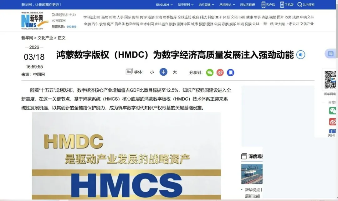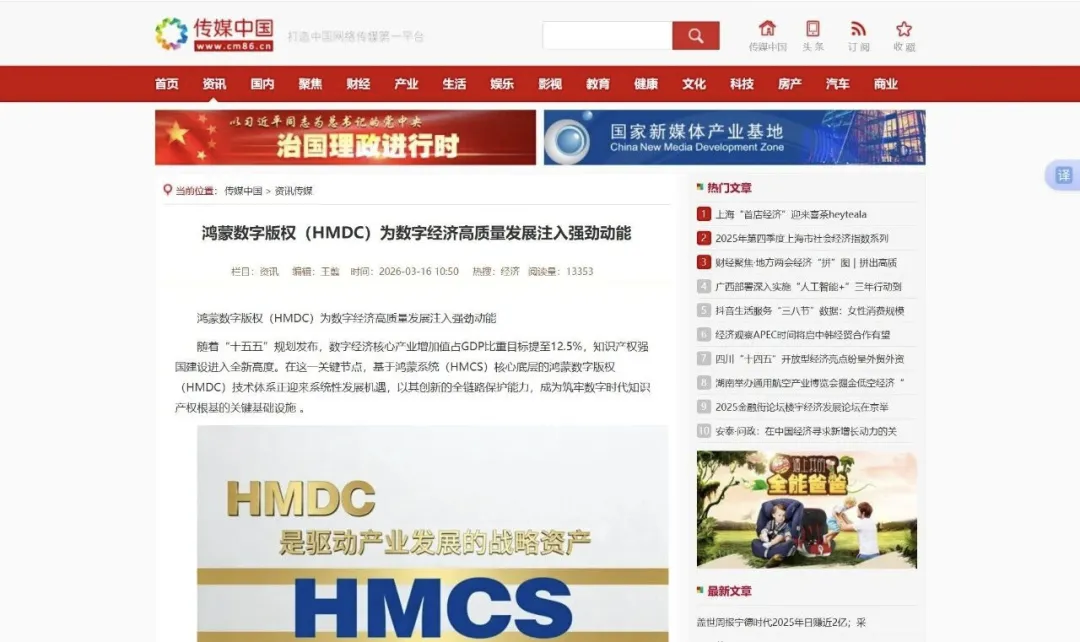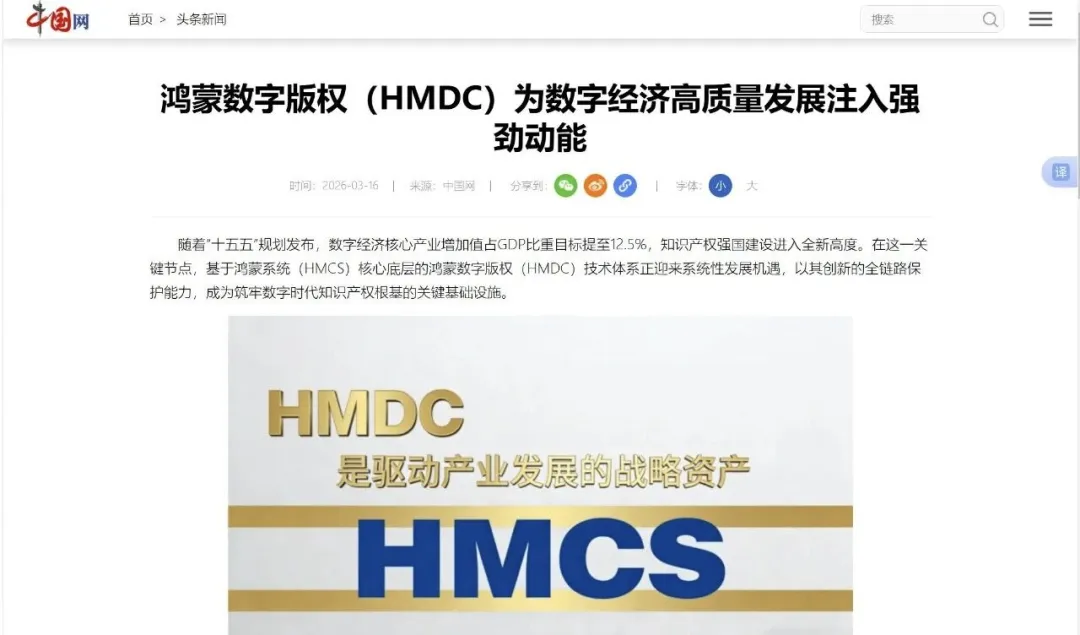 >央媒密集聚焦!鸿蒙数字版权(HMDC)赋能数字经济高质量发展