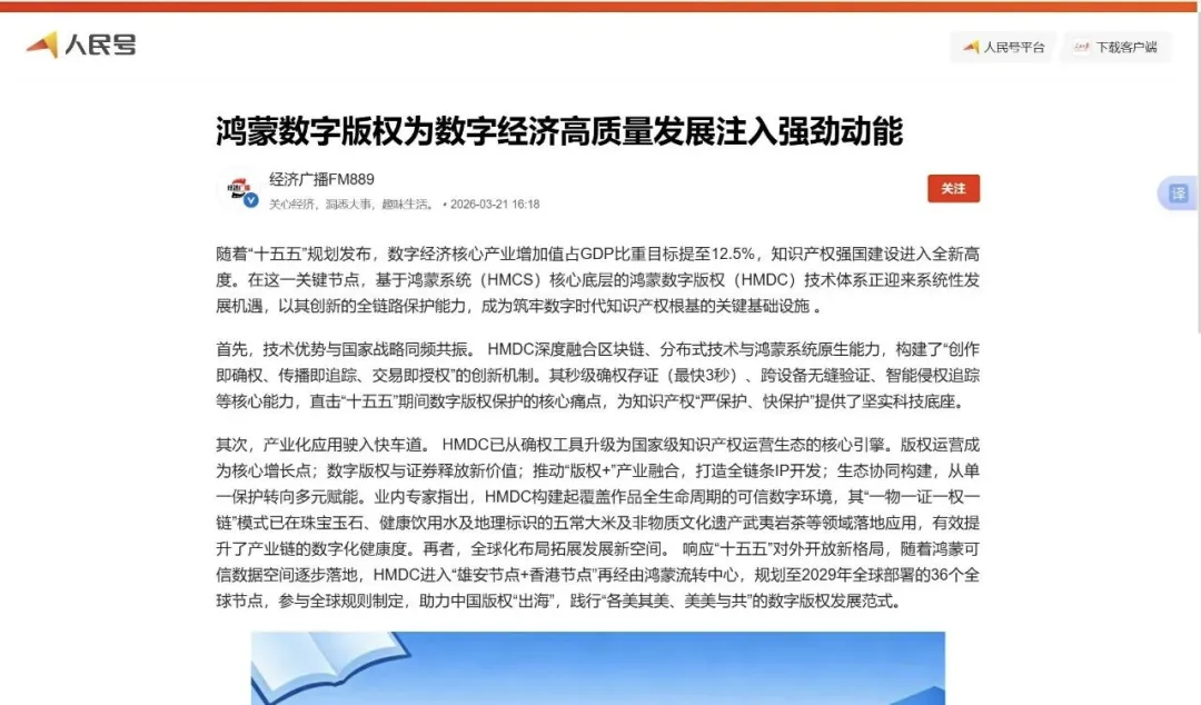 央媒密集聚焦!鸿蒙数字版权(HMDC)赋能数字经济高质量发展