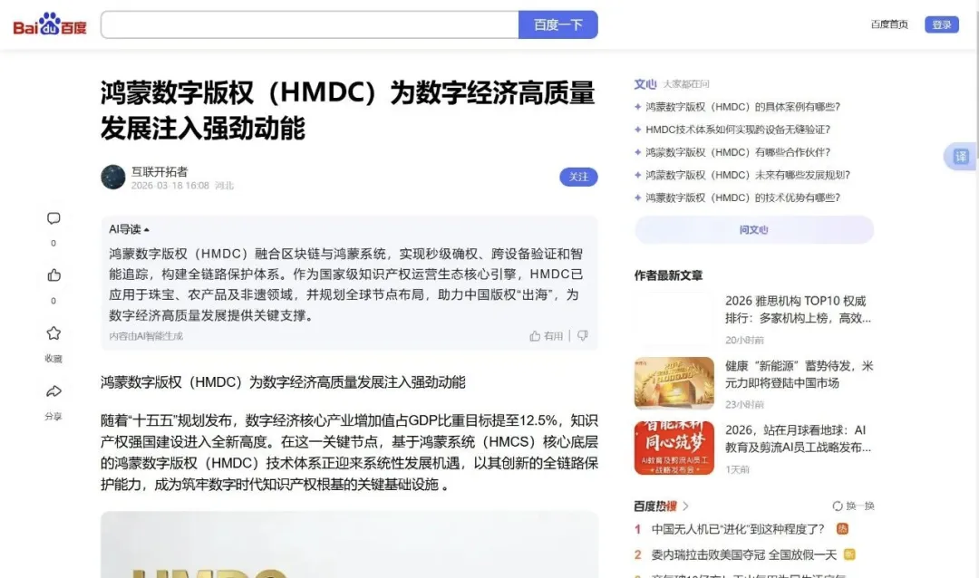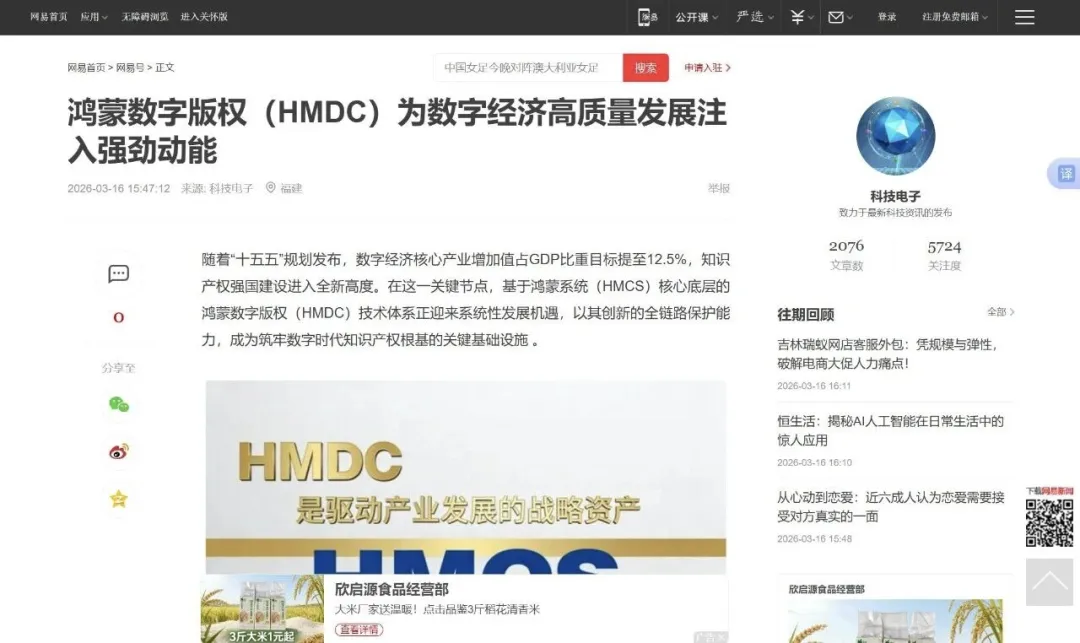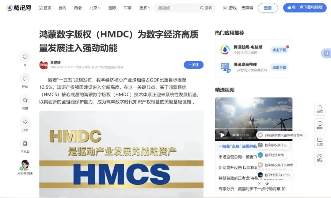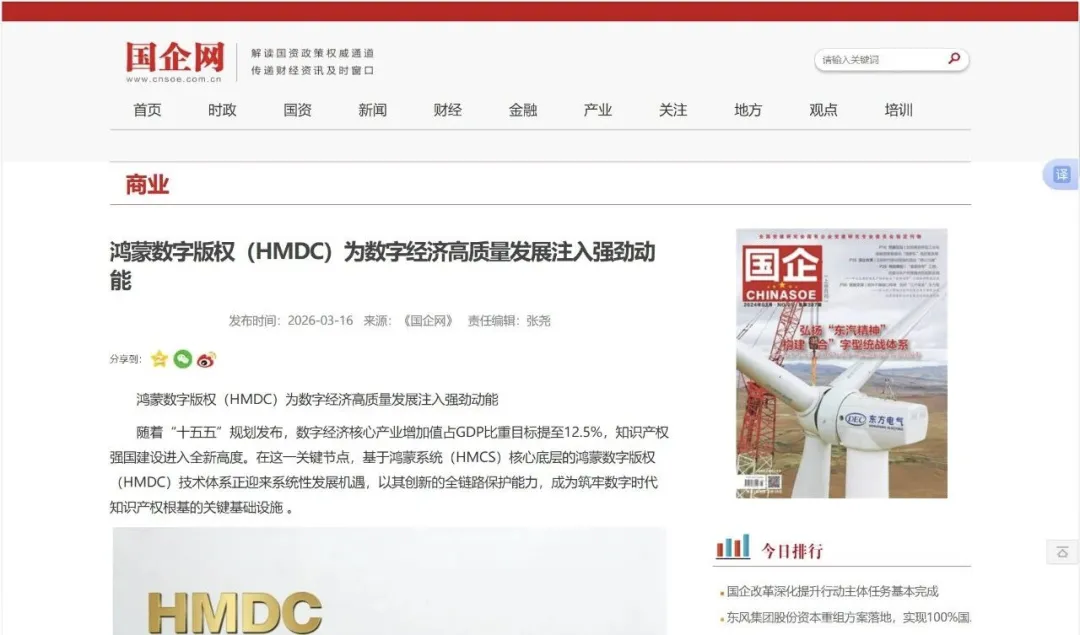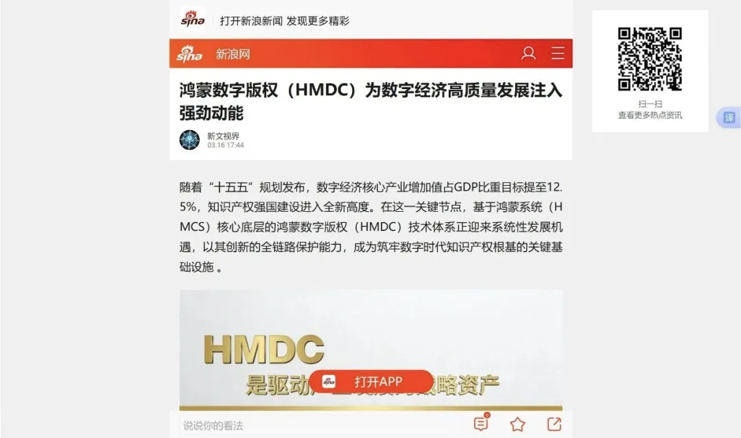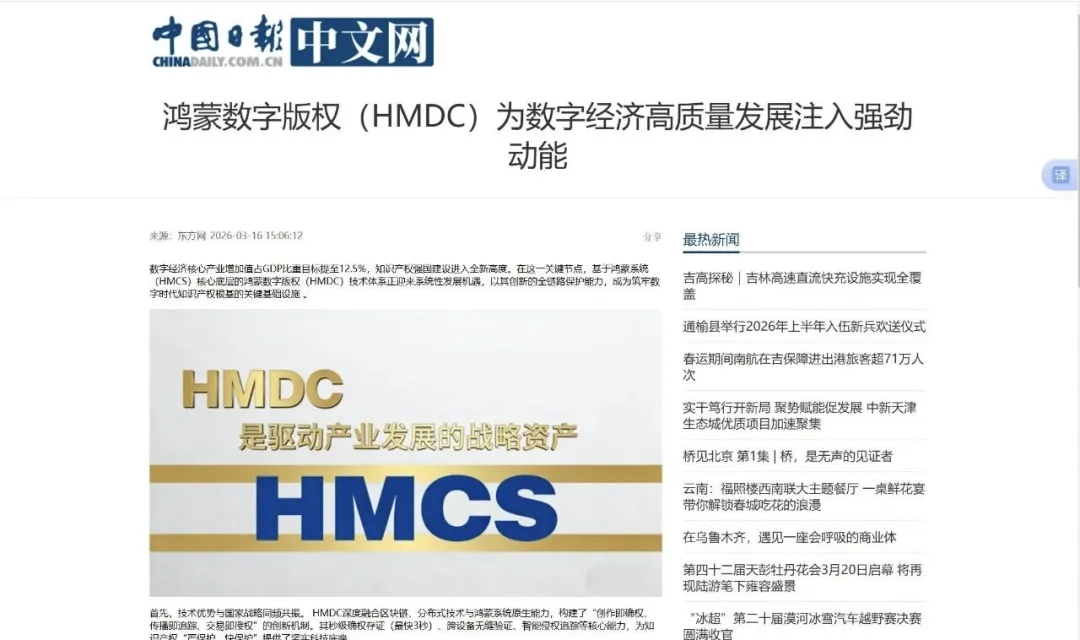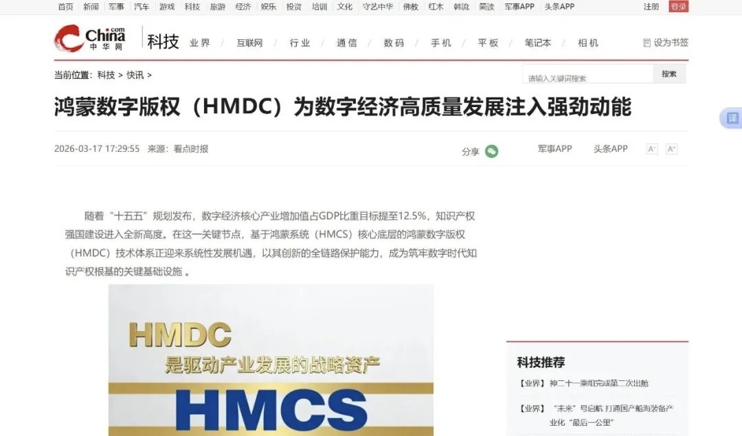 央国媒及大型门户网站等连续报道:鸿蒙数字版权(HMDC)为数字经济高质量发展注入强劲动能