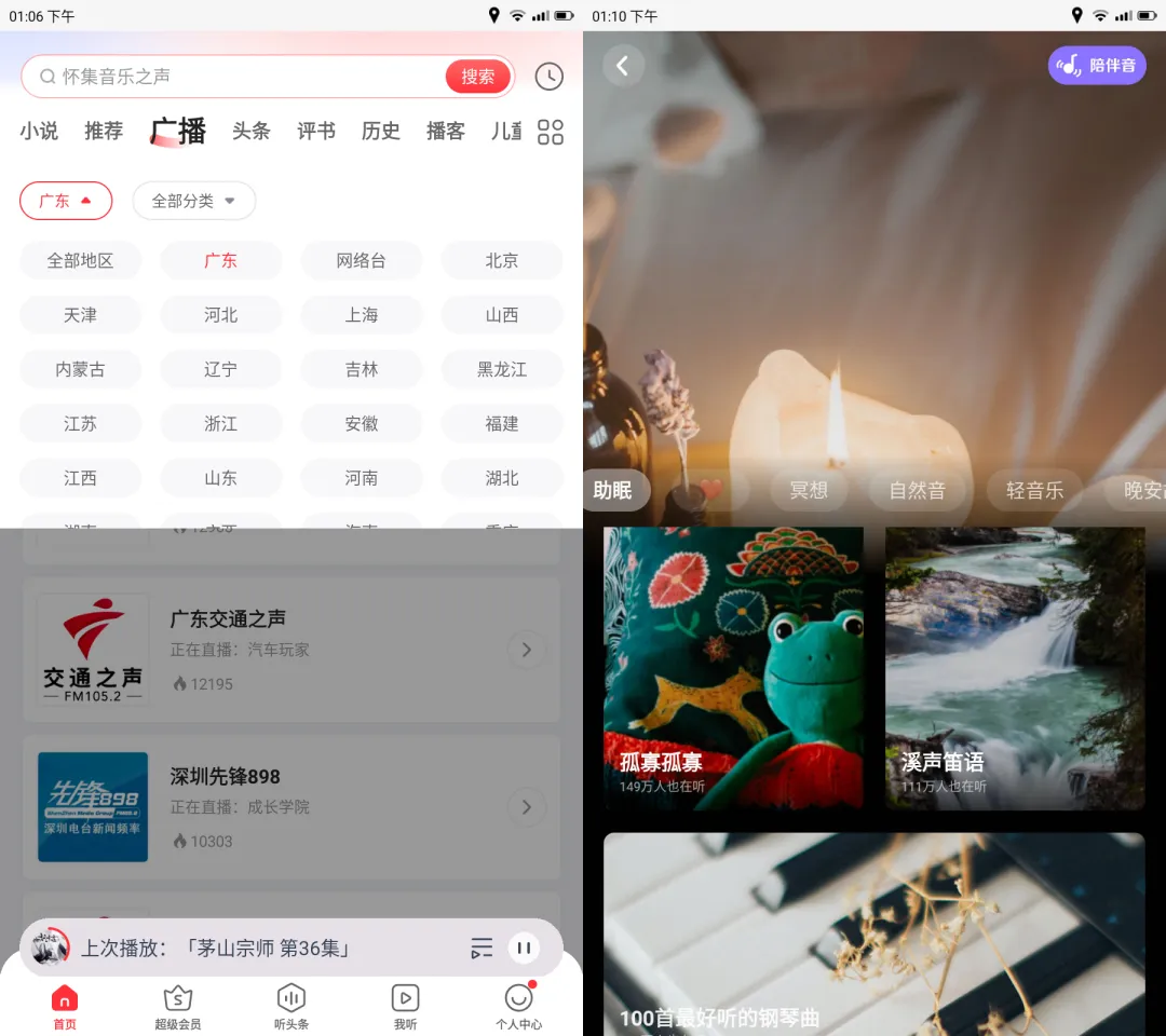 【应用介绍】 该应用可以在免登录状态下,使用广.播.电.台功能,网.络.广.播.电.台这块,汇聚了数千家国内广.播.电.台,支持24小时节目回听、预约,可设置电台闹钟;无网络广.播.电.台:纯无网络的本地调频广播,取决于你的手机是否保留FM硬件模块;多数近年机型仅支持网络电台收听;免费听:内有各种助眠、冥想、轻音乐、小说、儿童故事、热门网文等内容,可以下载离线收听。