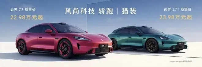 尚界Z7、尚界Z7T已正式开启预订,尚界Z7预售价22.98万元起,尚界Z7T预售价23.98万元起。即刻预订,可享至高价值11000元购车权益,包括价值5000元选配权益,以及价值6000元的电光紫粉/晚山新绿外饰限时免费。