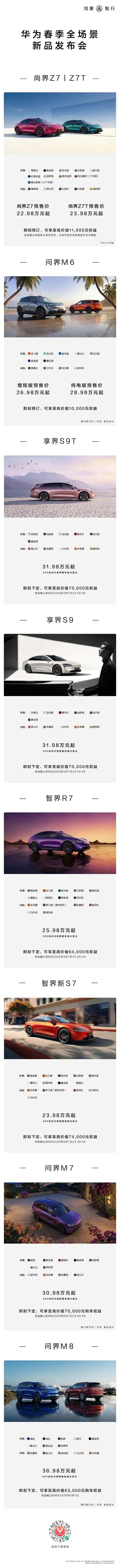 HUAWEI丨鸿蒙智行新品价格权益公布,一张图读懂!