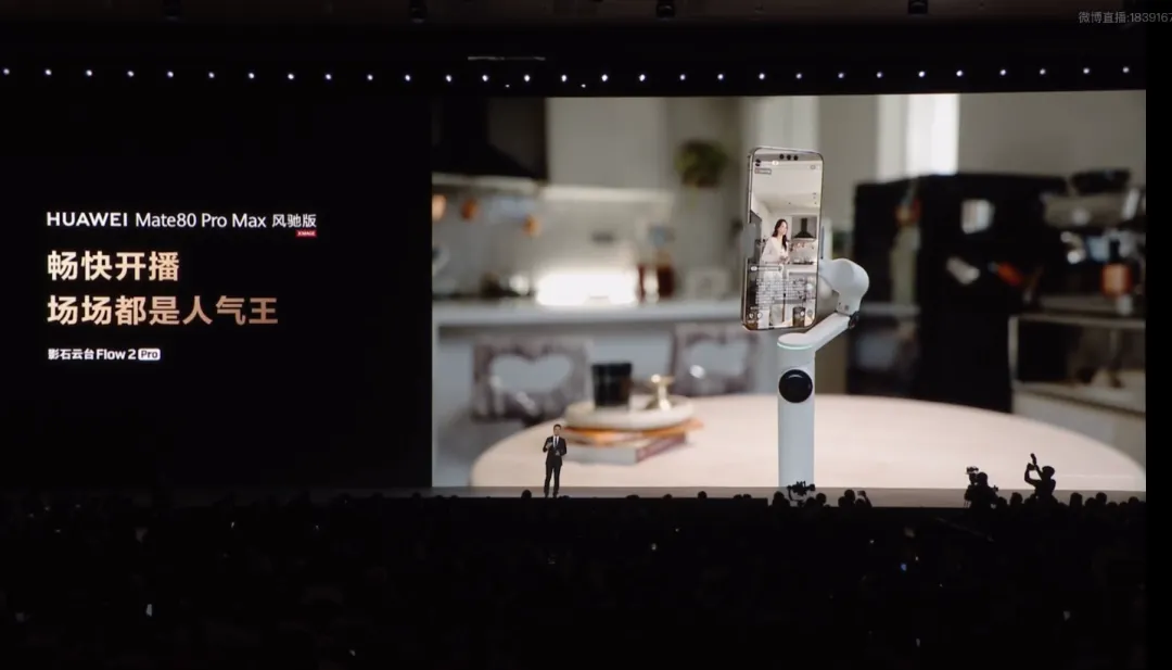 3月23日,在华为春季全场景新品发布会上,华为展示了影石的手机云台Flow 2 Pro搭配华为Mate80 Pro Max系列在直播场景下的智能追踪功能。Flow 2 Pro此前仅支持iPhone的原生相机追踪功能,现已适配搭载HarmonyOS 6以上版本的华为鸿蒙机型,无需任何外界设备即可直接使用。