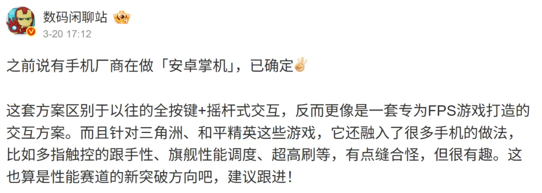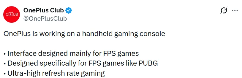此信息来源于微博上的“数码闲聊站”。该爆料者声称,已确认有一家智能手机制造商正在研发一款“安卓掌机”。虽然其发帖未提及具体厂商,但粉丝和社区普遍相信所指的是一加。该设备专为FPS游戏设计,例如《三角洲部队》和《和平精英》。作为一款基于安卓的设备,它将配备多指触控和高刷新率屏幕,同时也被标榜将拥有旗舰级性能。