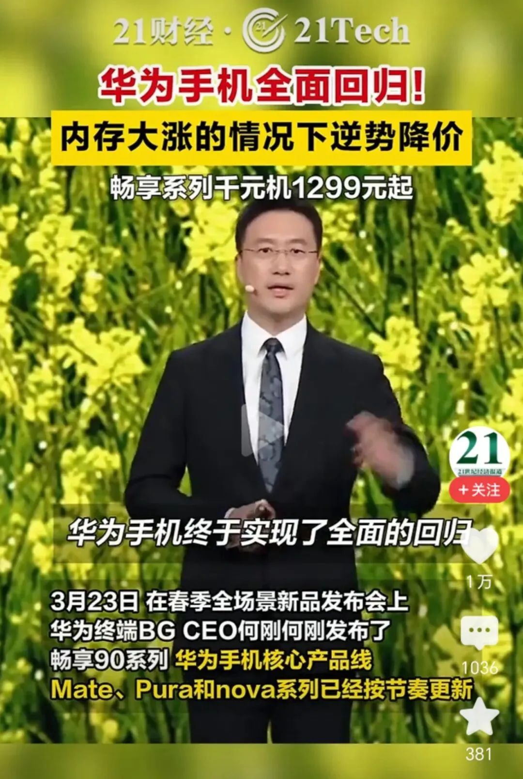 3月23日,华为春季全场景新品发布会正式官宣:手机业务全面回归,全产品线麒麟芯片+鸿蒙系统覆盖,千元机逆势降价,国产手机迎来里程碑时刻!