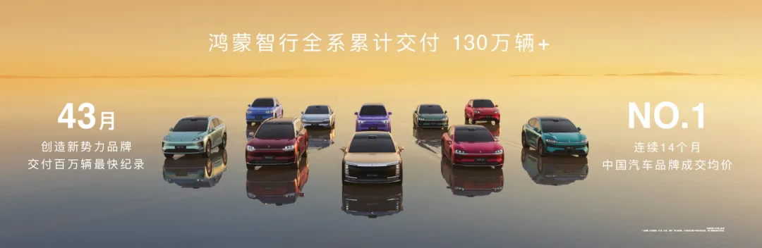 发布会开场,华为终端BG首席执行官何刚公布了一组数据:鸿蒙智行全系累计交付突破130万辆,43个月达成百万交付,刷新了新势力品牌最快纪录。