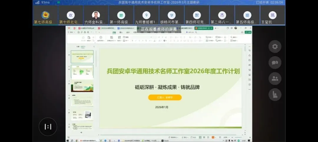工作室主持人安卓华老师对本次教研活动进行全面总结,肯定了同课异构的教研价值,梳理了研讨中的核心共识,明确了通用技术学科后续教学研究、课堂实践、教师成长等重点工作方向。并为工作室后续发展作出系统部署,围绕2026年工作室总体目标,明确以“四个强化”“七个做好”为工作总抓手,对全年重点任务进行细化安排、压实责任,确保各项工作有序推进、落地见效,推动工作室高质量发展。
