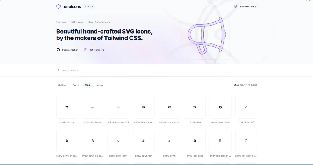- • 🔗 网址:https://heroicons.com/ (推荐 Mini 版本: https://heroicons.com/mini)