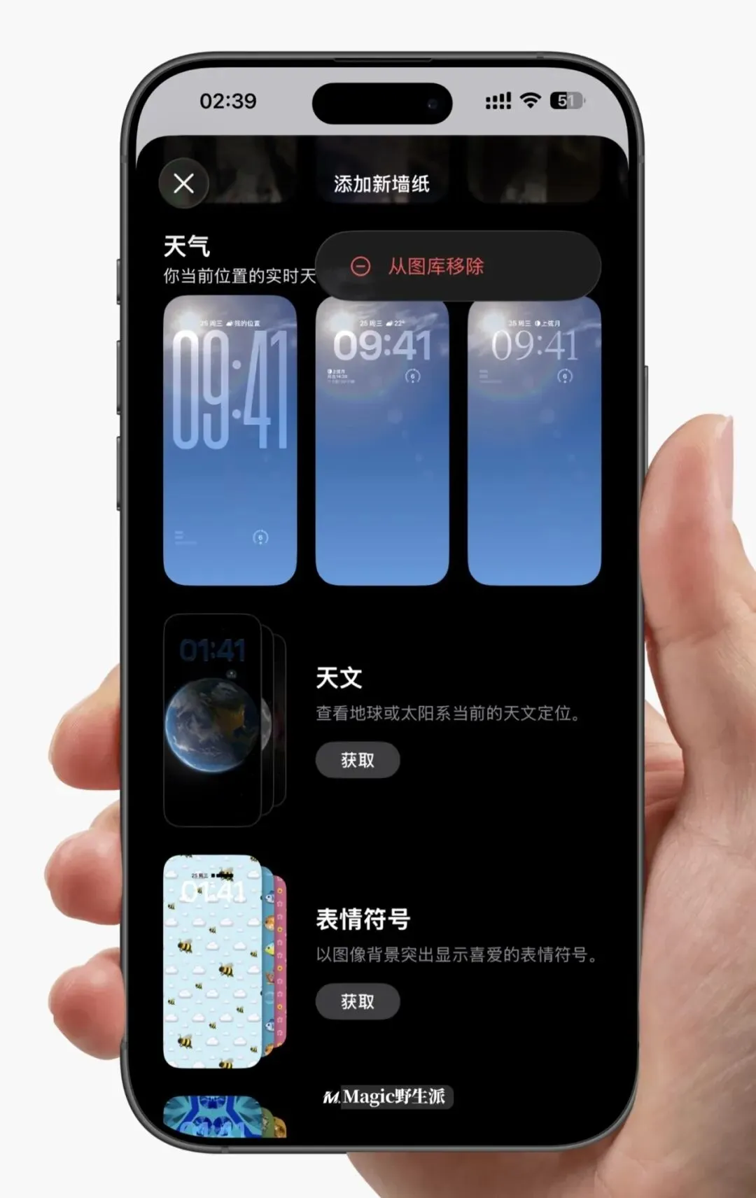 3.系统原生壁纸新增下载或移除功能