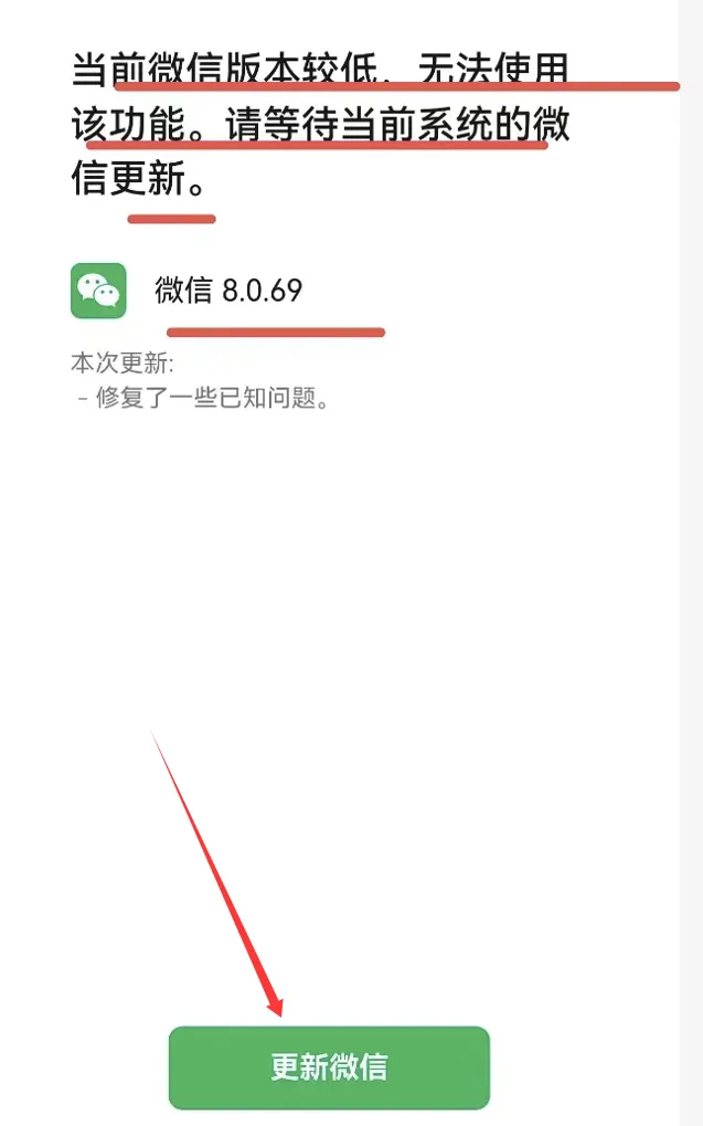 如果你是安卓用户,扫码后很可能会看到一个提示页面,告诉你"当前微信版本较低",让你更新微信。