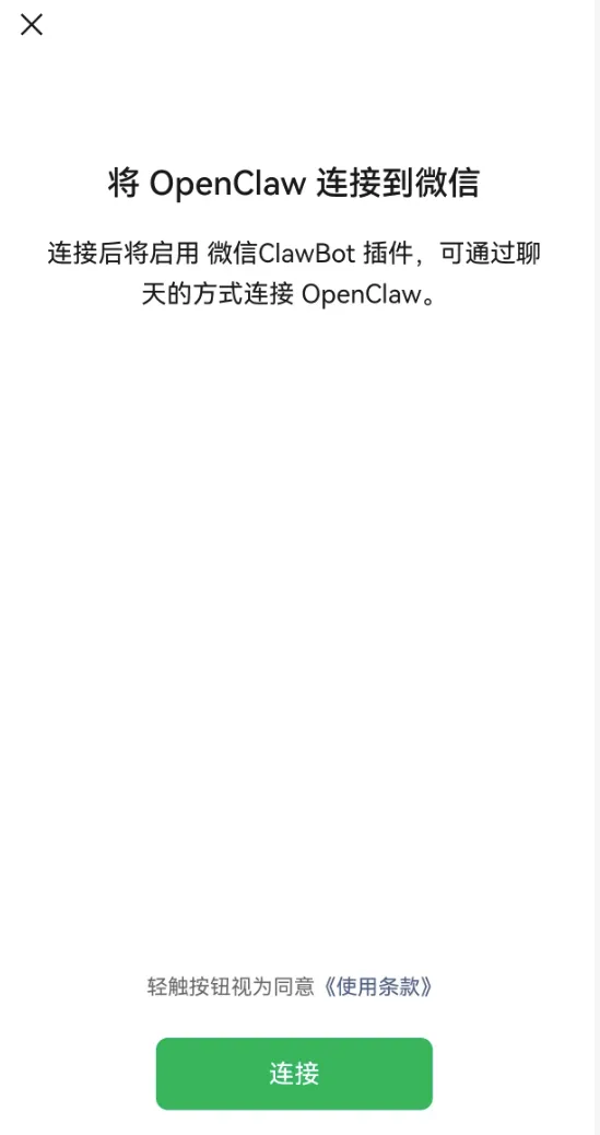 这次扫码后,微信会弹出一个确认页面,提示将 OpenClaw 链接到微信。界面上显示的可能还是 OpenClaw 的字样,但实际连接的已经是你本地的 Claude Code。