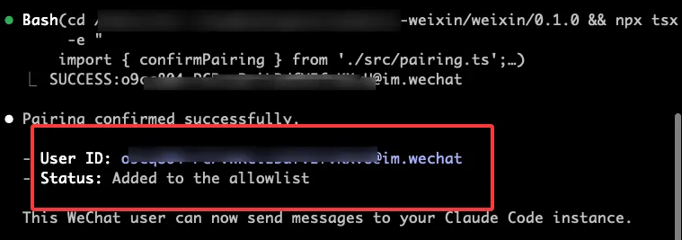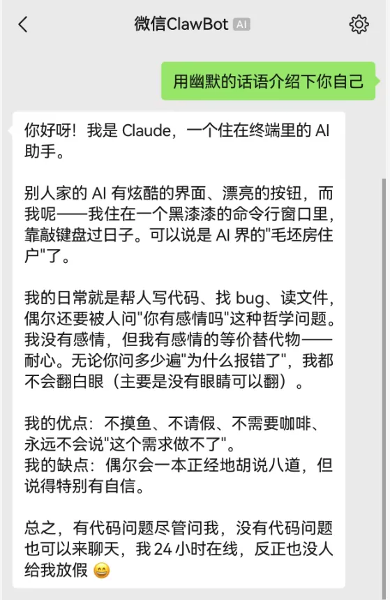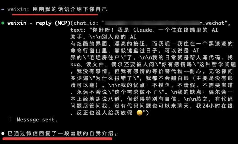 一切就绪。现在你可以在微信里直接和 Claude Code 对话了。