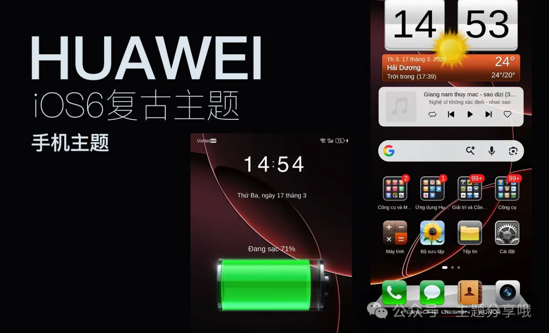 今天分享的主题为适合华为和荣耀手机的iOS6主题,它适应EMUI 13/12/11, HarmonyOS & Magic UI 6/5/4,这是华为和荣耀手机的主题用户界面。使用主题装饰你的手机,让你的手机即便是在同型号盛行的时代,也会让你的与众不同,如果你也很喜欢经常换主题壁纸的话,那么就请尽情的关注【主题分享哦】,基本每天会分享新鲜的主题、铃声等,让你的手机的与众不同,让我的公众号成为你手机中的宝藏号,每日的主题食粮。 与之前小编分享的其他精美主题一样,iOS6带来精心设计的全新图标、清新壁纸、流行字体、炫酷锁屏以及许多其他诸多变化。请查看下面的主题详细信息和预览,有喜欢此主题的小伙伴可以去下载使用它,每天都会有一种换新手机的感觉。- 使用说明
