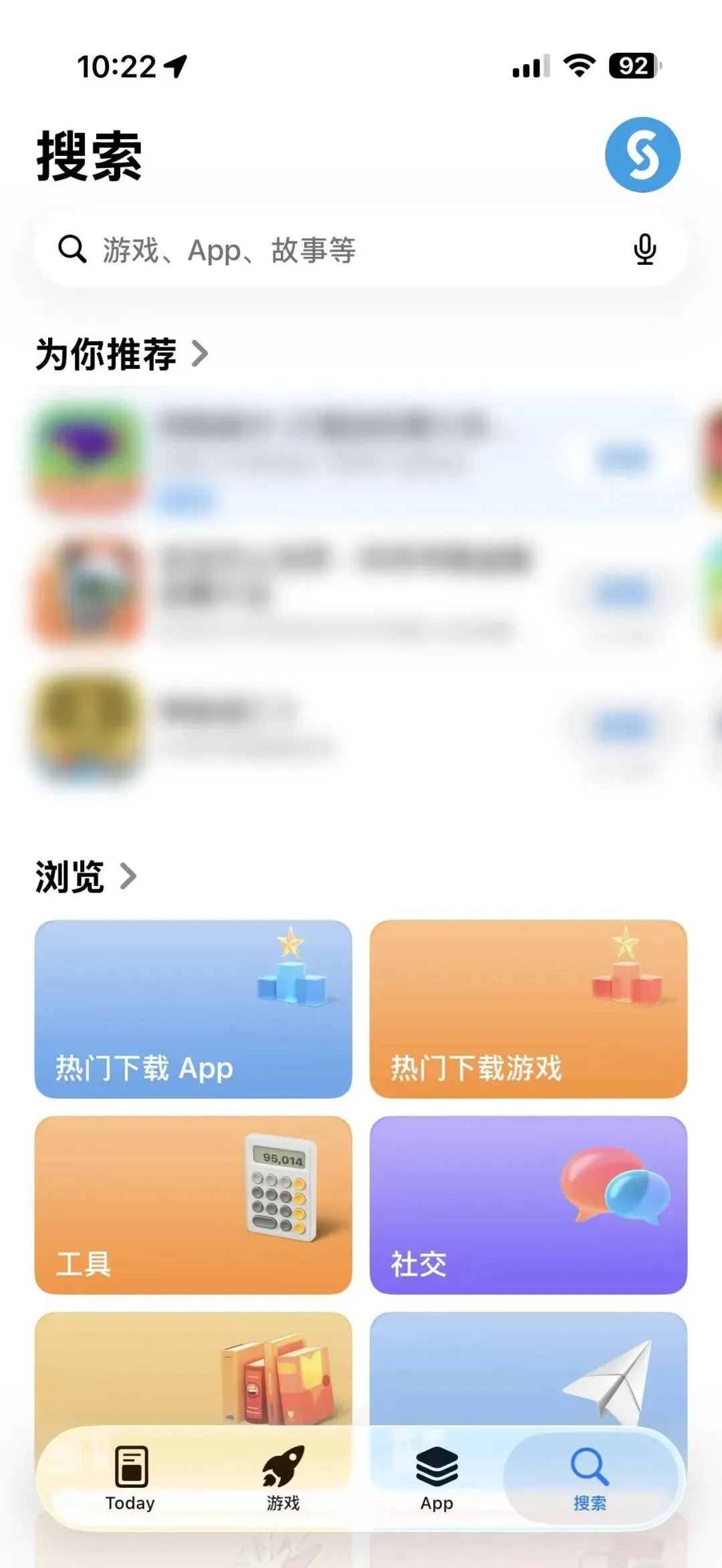 App Store、Apple Music 等应用搜索按钮和搜索框位置调整。