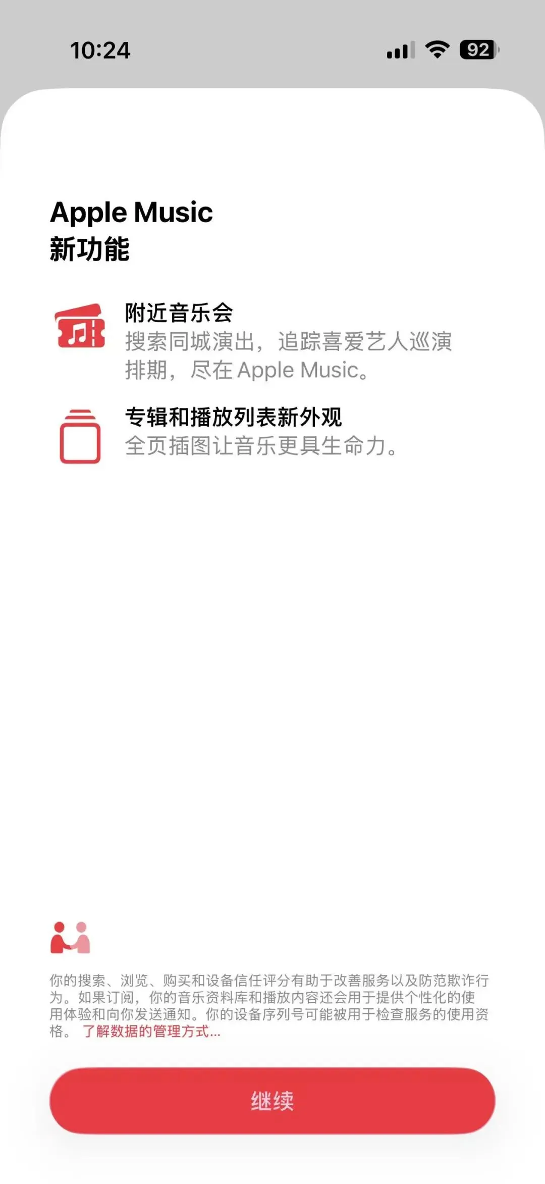 附近音乐会可帮助用户发现本地演出并智能推荐新歌手,专辑以及播放列表界面带来了新的全屏背景,新增环境音乐小组件,控制中心的音乐识别小组件支持离线识别。