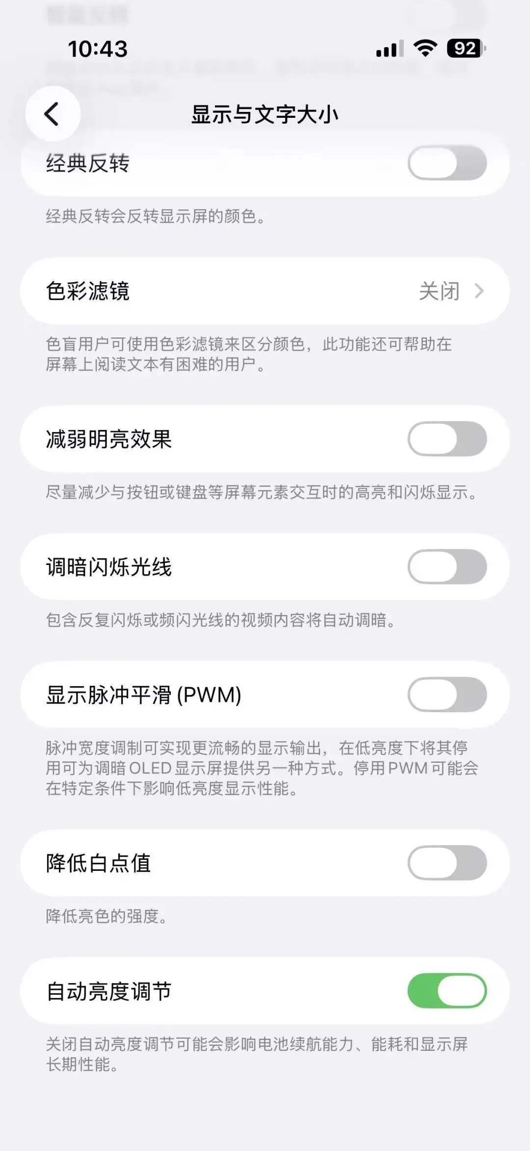 2、调暗闪烁光线:包含反复闪烁或频闪光线的视频内容将自动调暗。