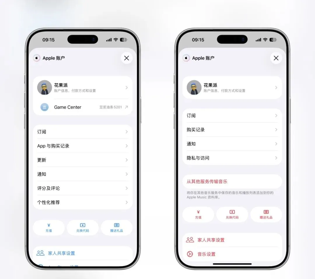在 App Store、Apple Music、播客应用的右上角进入 Apple 账户界面,可以发现 iOS 26.4 为这些应用带来了全新且