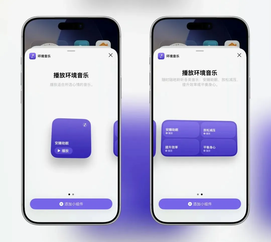 ,添加后可以在桌面或者负一屏快速播放各种风格的环境音乐。