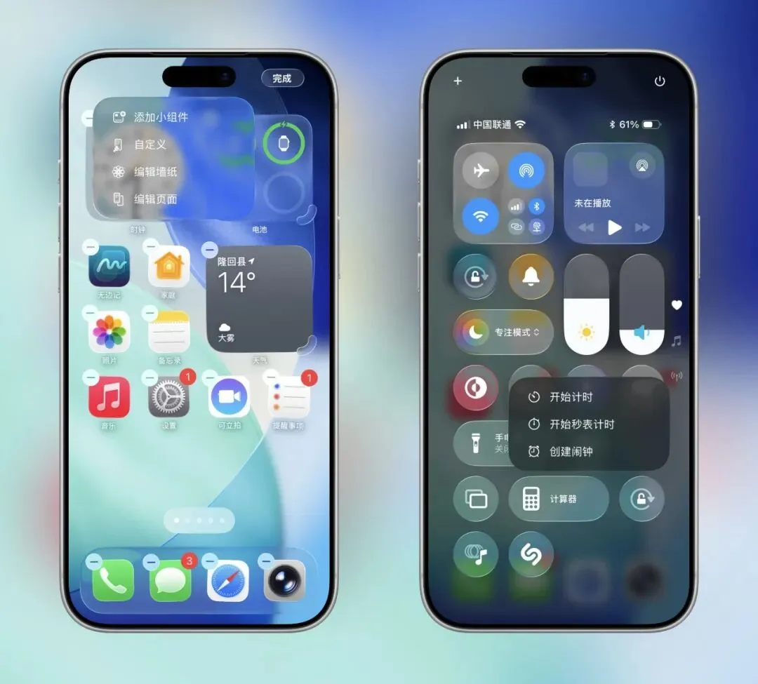 主屏幕的编辑菜单和控制中心的长按菜单,都新增了更加透明的