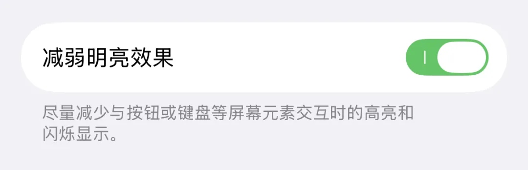 通过描述来看,开启后会尽量减少与按钮或键盘等屏幕元素交互时的高亮和闪烁显示。