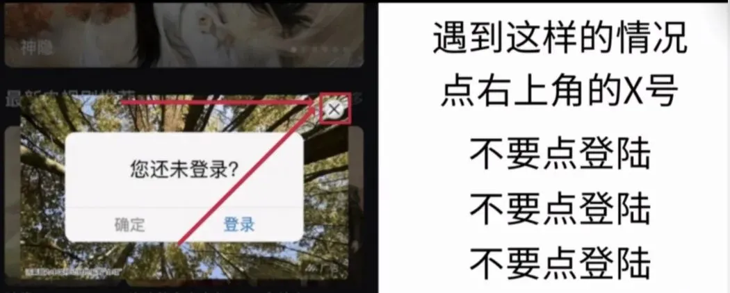 此类应用大多数会自带广告,若打开时看到已下提示,直接关闭即可,这只是一个广告,不要点登录,很多小伙伴以为是软件需要登录使用,其实不是,这只是一个广告页面而已。