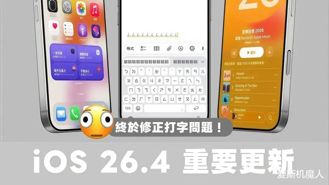iOS 26.4没有改变世界,它连个酷炫的开场白都没有。它只是像一个沉默但细心的老朋友,帮你把卡顿的键盘修好了,帮你把刺眼的屏幕调暗了,在你疲惫的时候给你放了一首恰到好处的歌,在你需要独立空间的时候给了你体面的支付方式。
